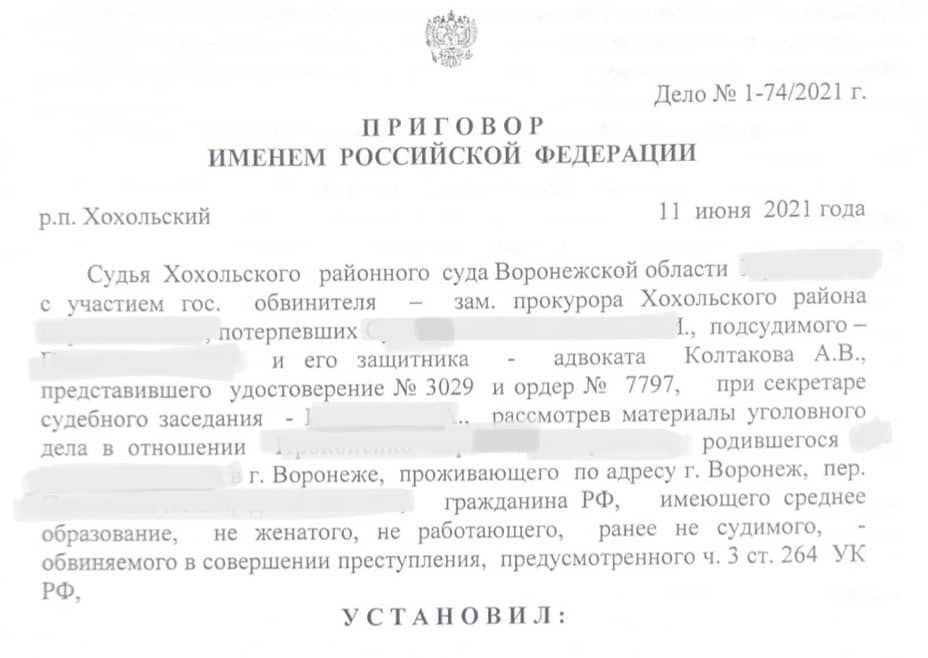 Клиенту грозило реальное лишение свободы на срок до 5 ЛЕТ с лишение права управлять транспортным средством до 3 лет!
